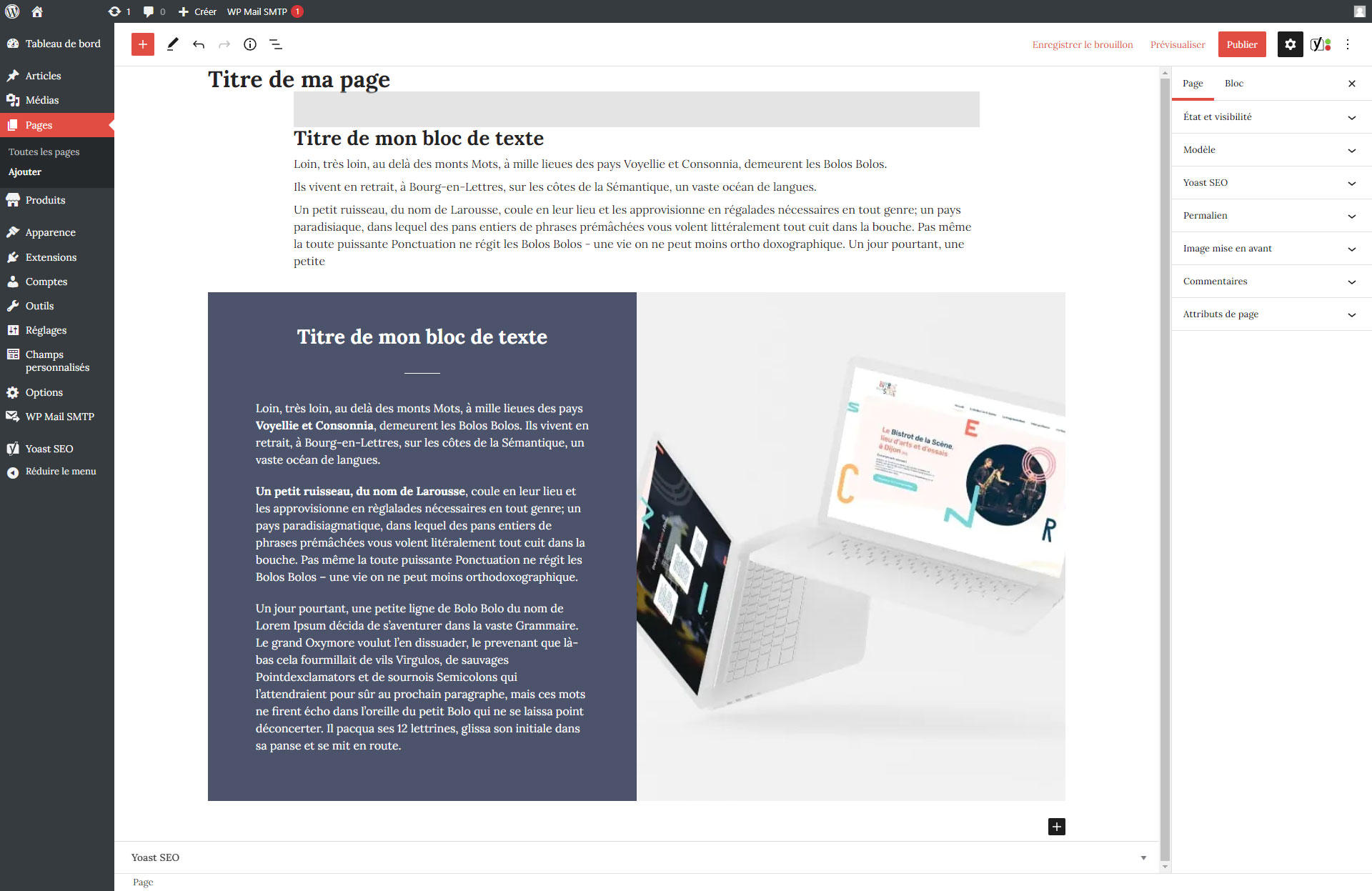 Brique Colonnes textes à droite